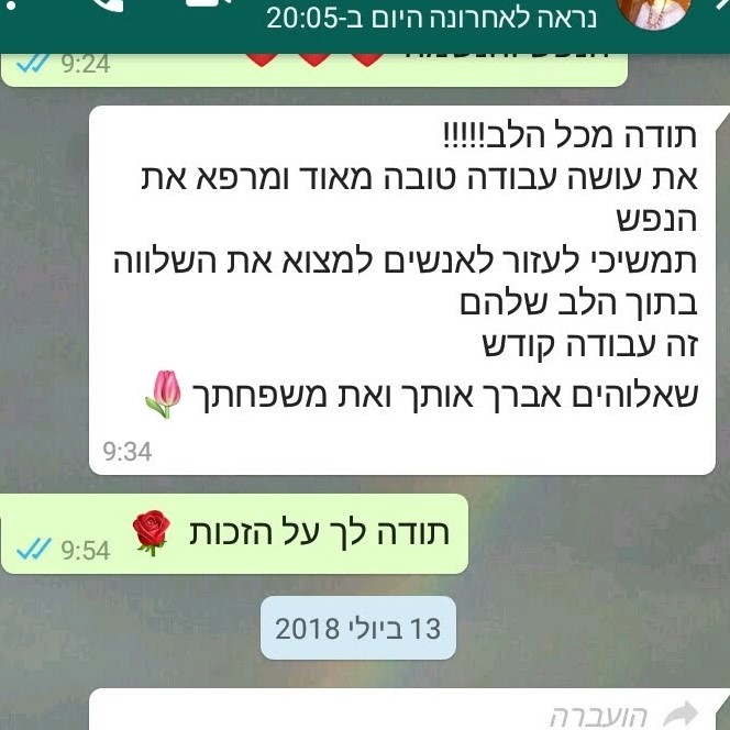 אני מאמינה בכוחן של מחשבות חיוביות ומעצימות לעודד ריפוי והבראה ובקשר ההדוק בין הגוף לנפש.